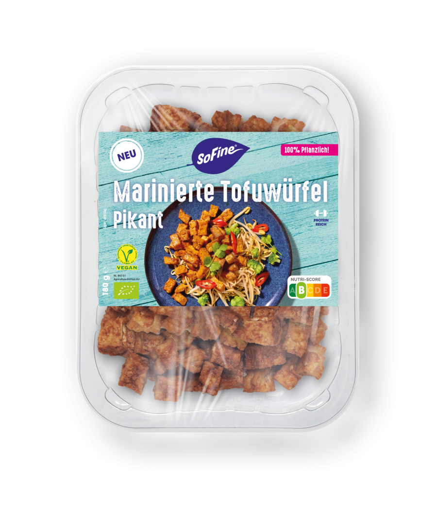 Denken Sie bei Tofu noch immer an weiße Würfel ohne Geschmack? So Fine bringt euch gerne auf andere Gedanken mit unserem marinierten Tofu Würfel Pikant. Diese Tofu Würfel sind produziert aus Biologischen Sojabohnen und sind scharf gewürzt mit Thailändischem Kräuter und Gewürze. So Fine marinierte Würfel sind ideal zum Wocken oder im Salat. Würfel sind…