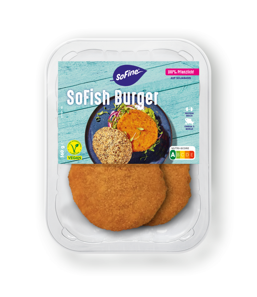 Vermissen Sie Fisch? Dann haben wir eine gute Nachricht für Sie: Aus unseren frisch gefangenen Sojabohnen machen wir einen echten Fisch-Burger. Vollkommen pflanzlich, voller Geschmack und garantiert grätenfrei 😉 Angeln Sie ihn sich im Supermarkt, lassen Sie ihn einige Minuten lang in einer Pfanne mit ein wenig Öl schwimmen und genießen Sie unseren gesunden SoFisch-Burger.