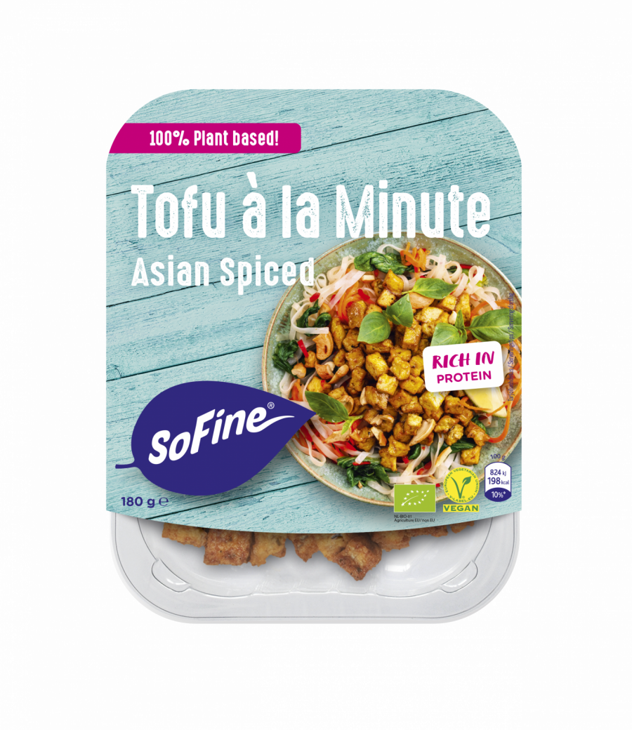 SoFine-luomutofut ovat täysin kasviperäisiä, laktoosittomia ja gluteenittomia. Tofu à la minute -kuutiot ovat valmiiksi marinoituja sekä esikypsennettyjä. Ne toimivat sellaisenaan erinomaisesti salaateissa sekä kuumennettuna lämpimien ruokien lisukkeina.