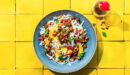 - Paista tofupalat kasviöljytilkassa rapeiksi. Kääntele pesto ja tofupalat pastan sekaan ja jaa lautasille. Viimeistele annokset basilikanlehdillä, rouhi päälle mantelit ja ripottele päälle vegaanista juustoraastetta. Rouhi annoksille vielä mustapippuria ja tarjoa kuumana.
